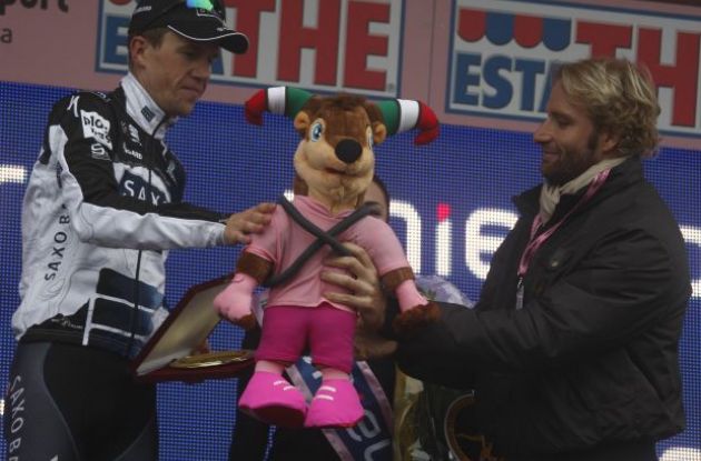 Chris Anker Sorensen climbs to win in stage 8 of the 2010 Giro d'Italia; Alexandre Vinokourov of Team Astana keeps overall Giro lead.