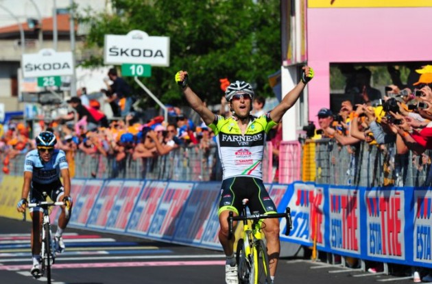 Farnese Vini's Oscar Gatto wins stage 8 of the 2011 Giro d'Italia; Team Rabobank's Pieter Weening keeps overall Giro d'Italia lead.