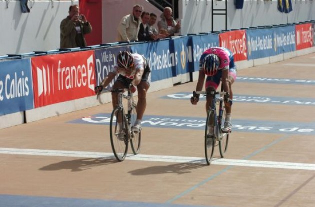 The trio entered the velodrome together. The three remained together until the last 200 m, when, on the final banking, Boonen powered away from Cancellara and Ballan to win by 20 m.