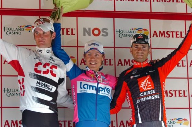 Damiano Cunego (Lampre) has won the Amstel Gold Race. The Italian took a two-up sprint from Frank Schleck (CSC) to win the rugged, 257.4-km race in 6:35:29. Alejandro Valverde (Caisse d'Epargne) finished third.