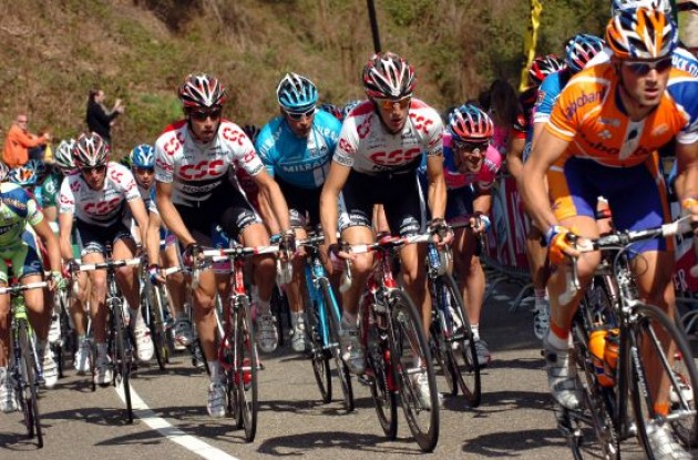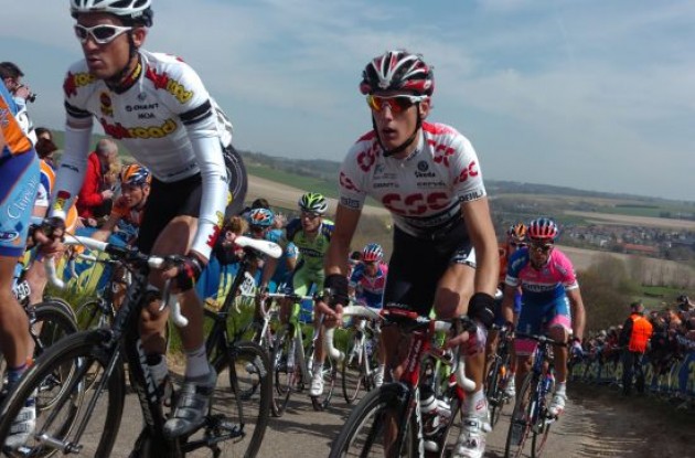 With 75 km left, after the second breasting of the Cauberg, the peloton began to pursue seriously. CSC joined Rabobank and Gerolsteiner at the front, and riders attacked from the peloton. On the Wolfsberg, with about 40 km remaining, Niki Terpstra (Milram) attacked. He bridged up to the leaders, but the bunch reeled in all four riders on the Loorberg with 36 km remaining.