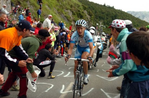After 150 km, Caisse d'Epargne, Francaise des Jeux, and Rabobank joined Euskaltel at the front. On the lower slopes of the Category 1 Col de Peyresourde, Lang dropped his companions. At the summit, the German was 0:40 ahead of Kuschynski, 1:15 ahead of Jalabert, and 6:00 ahead of the peloton.