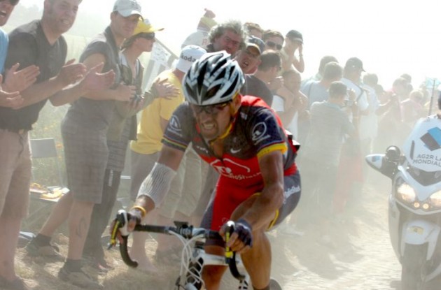 Defending Tour champion Alberto Contador - whose abilities on cobbles had been in doubt - and last year's runner-up Andy Schleck - Frank's younger brother - were among the title contenders who gained time on Armstrong.
