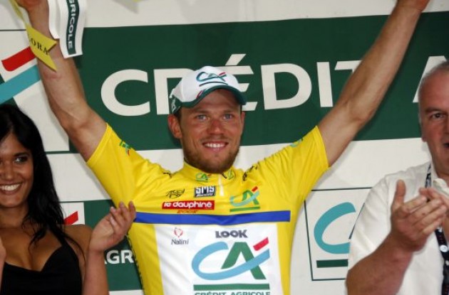 Alejandro Valverde (Caisse d'Epargne) has won Stage 1 of the Dauphine Libere. Valverde took a bunch sprint to snare the rolling, 194-km run from Avignon to Privas in 4:46:36. Thor Hushovd (Credit Agricole) finished second, and Bjorn Schroder (Milram) took third. Hushovd has taken the overall lead from Levi Leipheimer (Astana).